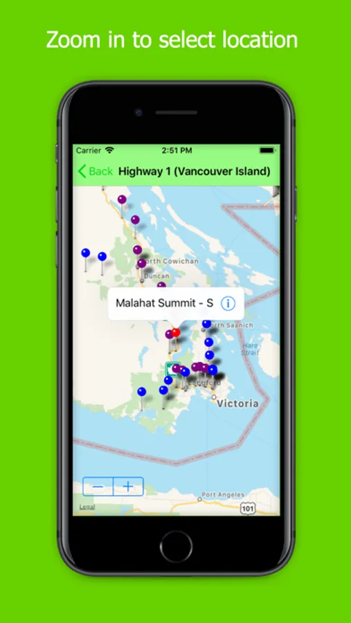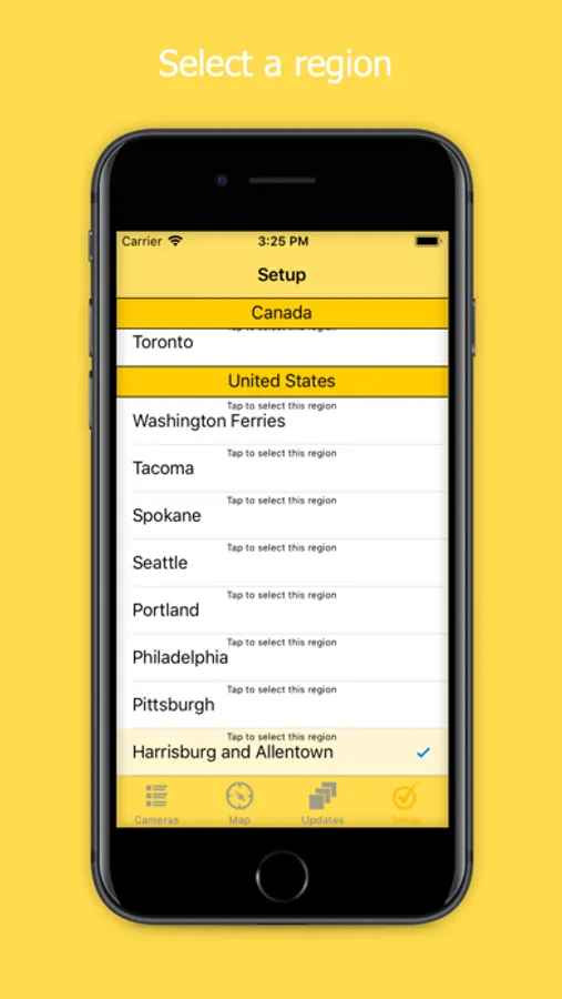 DOT Traffic includes maps for most regions, showing the location of each camera. Touch a camera icon to select the camera view.