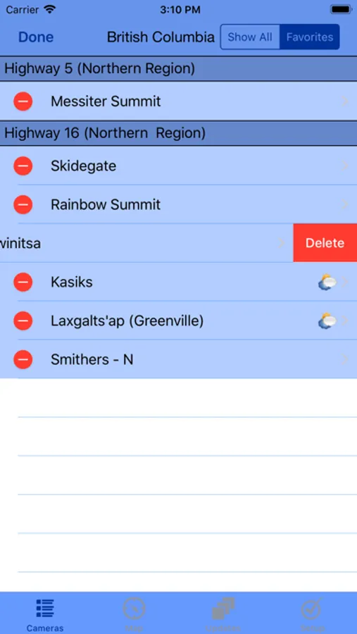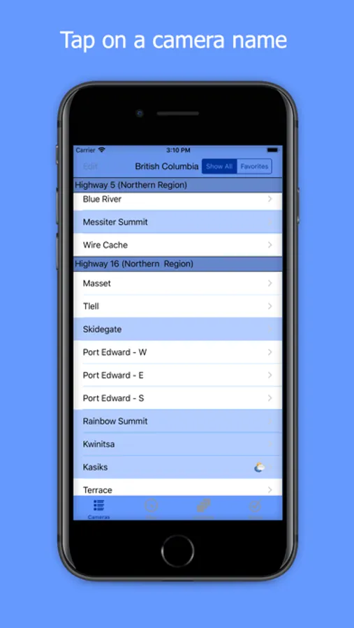 Touch the Favorite button on any camera page to copy to your Favorites list for faster access. Switch quickly from Show All to Favorites mode. In Favorites Mode the Previous and Next buttons follow the Favorites list.