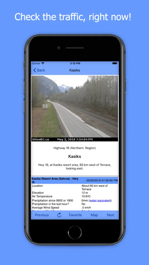 Ready to head out and you want to check the road conditions? DOT Traffic is the fastest way to get to the highway cams that matter to you. Instead of browsing to a web site and working your way through the menus and maps to find a web camera just open DOT Traffic on your iPhone and go straight to the camera you want with one click. Flick through the other cameras in order, with a simple Next button.