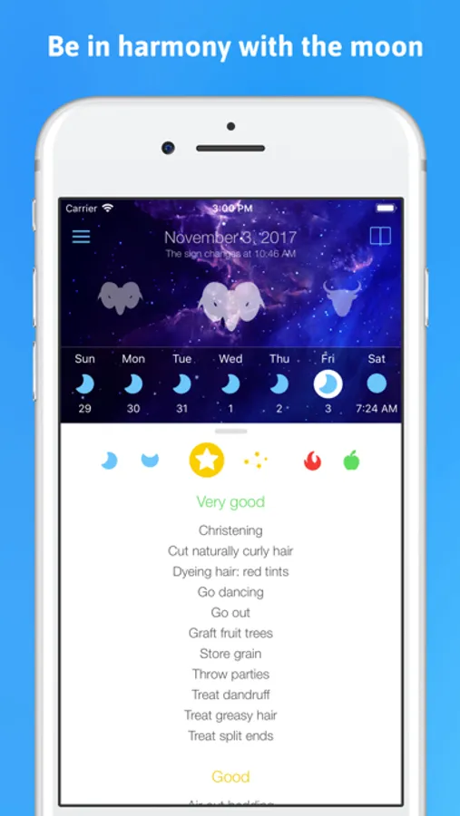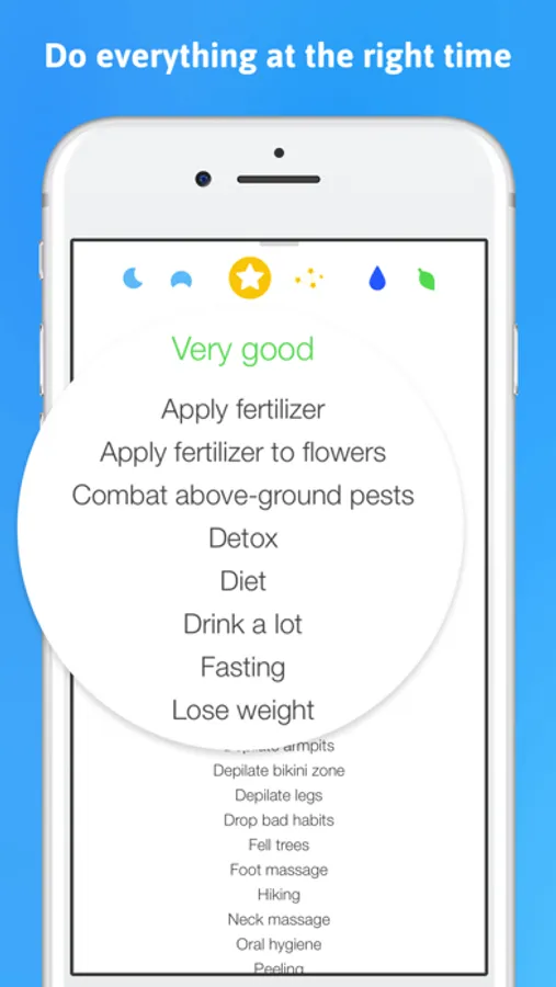 Additionally it shows you the detailed effects of the moon in 4 categories: Effects on your personality, Health, Household and Garden, Relationship & Business