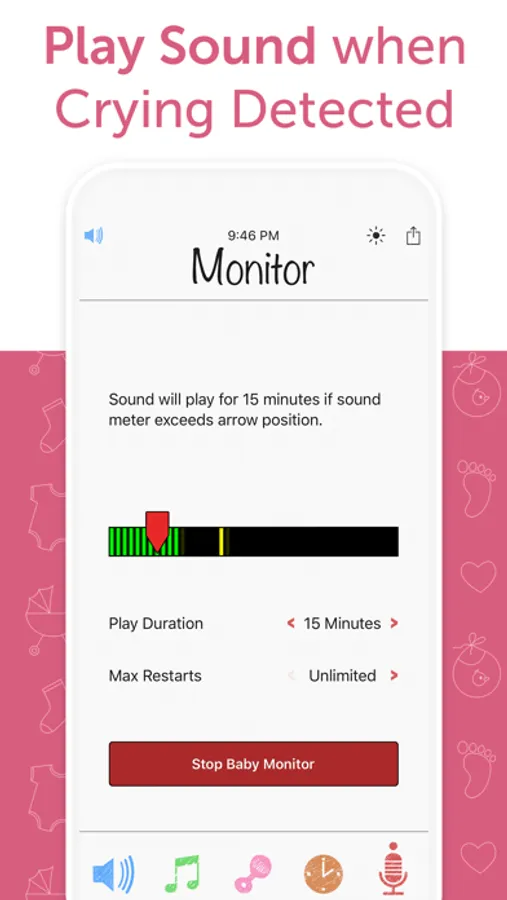- Baby monitor plays sound when crying is detected
