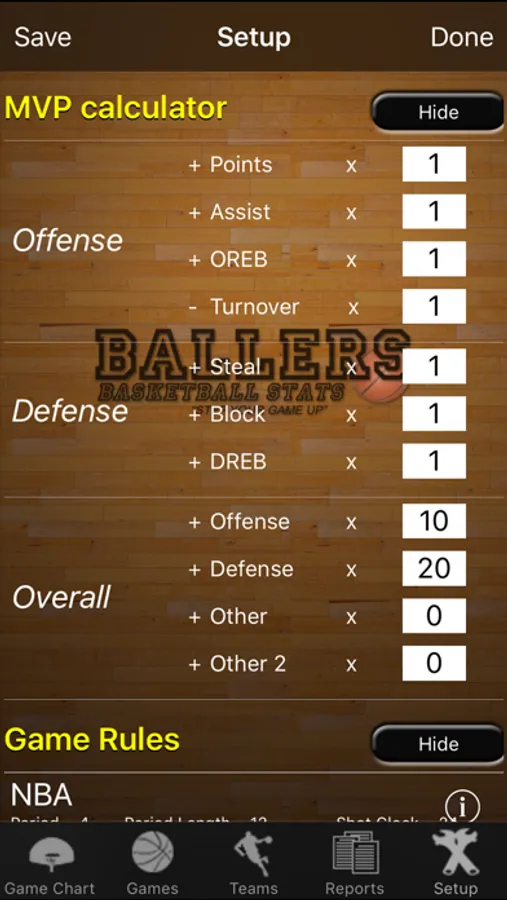 Ballers Basketball Stats is a great basketball stats tracking app. It provides the best reporting, best analytics, and is the most customizable stat tracking app on the market.