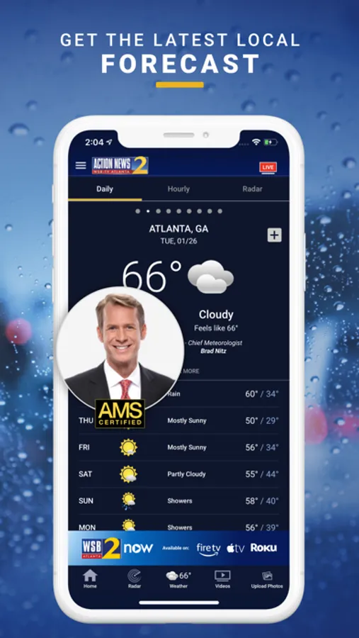 • Tracking storms minute-by-minute with StormTracker 2 HD radar and 24/7 access to the 5-day forecast so you know how the weather will impact your day.