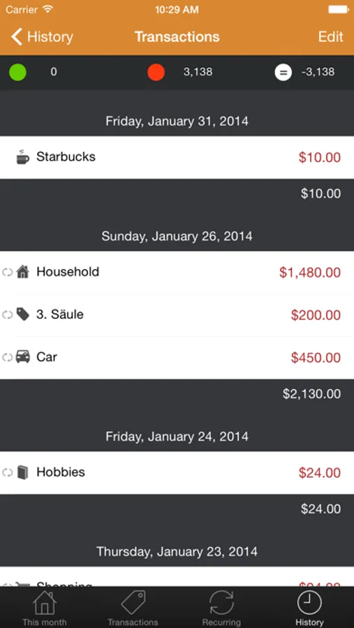 - See all your transactions in beautiful animated statistics (turn your device to landscape in transactions view/history)