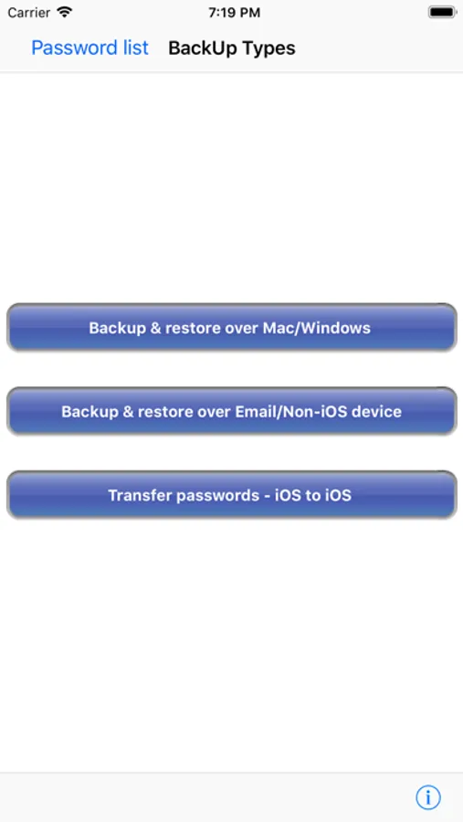 The backup utility is a Desktop software for Windows/Mac devices which transfers your passwords from your Tablet/iPhone/iPod device to your computer and vice-versa with some easy steps.