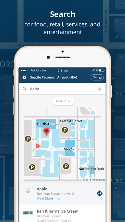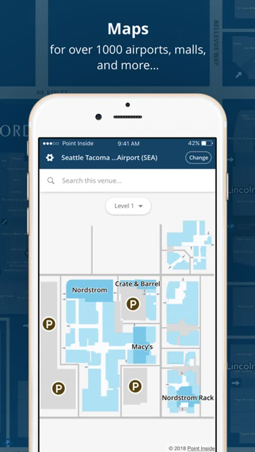 Easily find your way around malls and airports with Point Inside’s interactive maps and navigation. The app features indoor maps of nearly 1,100 malls across North America and over 250 airports worldwide.