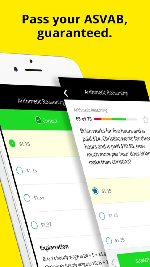 With ASVAB Practice for Dummies, you will be able to reach your goal and be prepared for a career in the U.S. army. Our learning app is designed for recruits to practice for the ASVAB challenge and to identify areas they may struggle with, maximize the time need to study, and get the best ASVAB score.