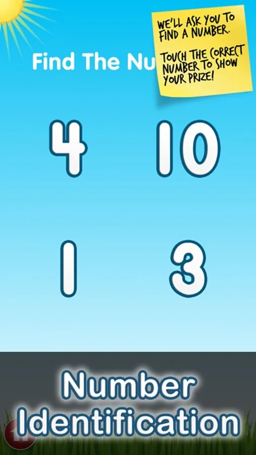Multiple numbers are shown on the screen and a voice requests you to touch a specific number. If you touch the right number, an object is shown, then it moves to the next number. Get through all 20 numbers and you win! Use app settings to play in random order or hide the hints to make the game more difficult.