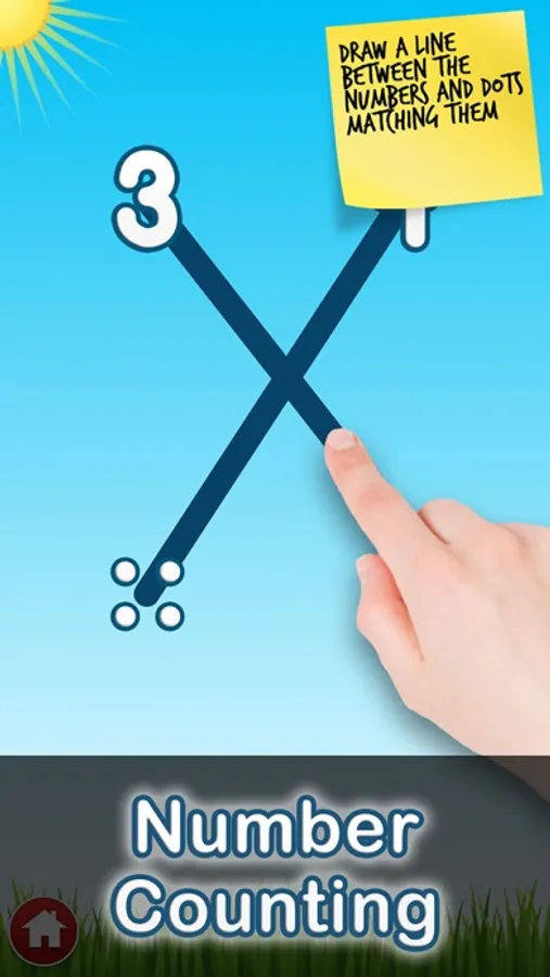 The top shows numbers. The bottom shows dots. Draw a line between the number and the dots that match to get to the next level. Enable random order in app settings for even more challenge.
