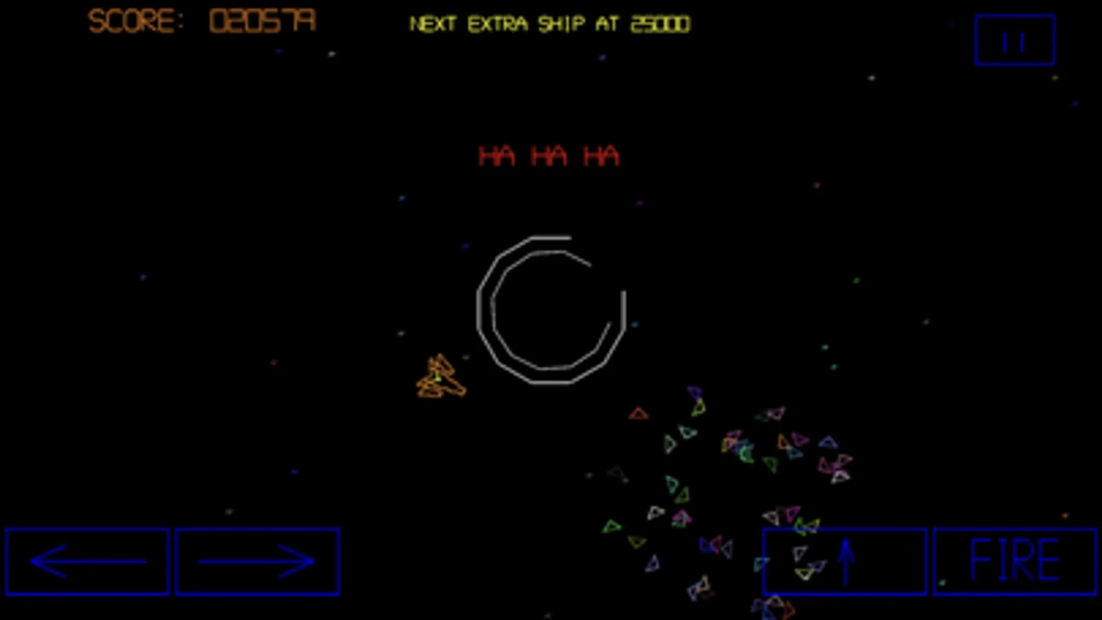To control the game, position your thumbs over the controller overlay at the bottom of the screen. You can rotate your ship left and right with the left thumb. You control your thrusters and fire control with your right thumb. If you happen to run into the Star Fortress, your ship will bounce harmlessly (unless there's a spark attached to that particular ring segment). While your ship is fading in, you are free to move and are invulnerable for a few seconds.