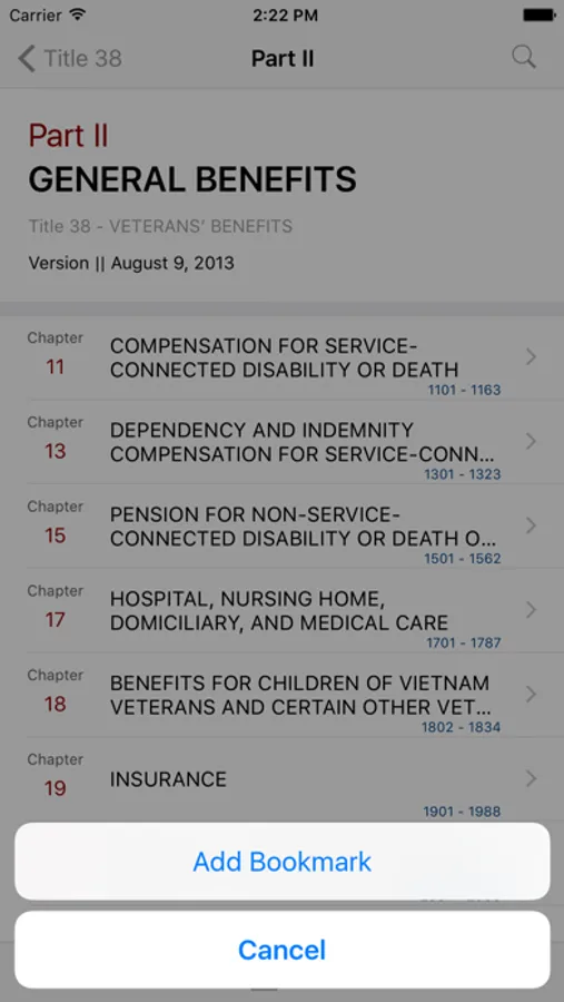 LawStack's complete Title 38 USC - Veterans' Benefits. Leave the heavy books at home and buy this app now.