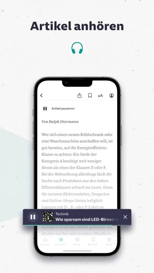 Die meisten Artikel können Sie auch bequem anhören, indem Sie auf das Play-Icon oder Artikel anhören tippen.