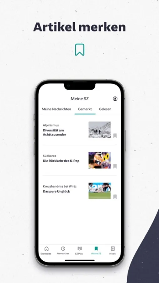 Unter Meine SZ finden Sie individuell für Sie zusammengestellte Artikel sowie Ihre gelesenen und gemerkten Artikel. Mit dem Lesezeichen-Icon können Sie Artikel in der Liste unter Meine SZ für später vormerken.