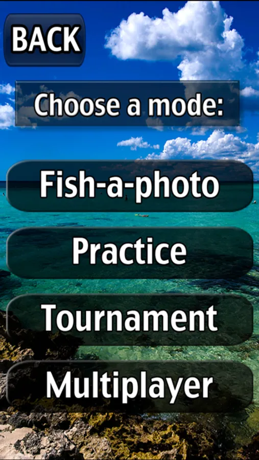 - Practice, Tournament modes, Fish a photo, and multiplayer modes