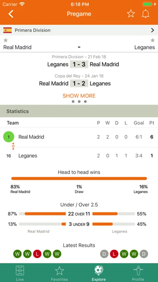 Keep track of all the ongoing in-play action in our livescore app, and get notified about important events of your choice in real-time. The newly designed menu has improved the app's usability and will make it easier for you to find exactly what you need.