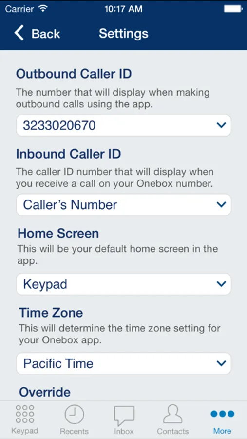 Note: No emergency calling (911) available using the Onebox Application. Valid Onebox account is required to use the mobile app, some features are additional.