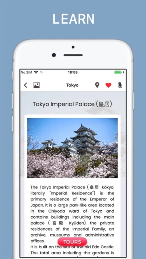 AUGMENTED REALITY, unlike other tourist guides you will be able to discover the city with the best iPhone tool - AR - Just click on the AR button, turn yourself 360° and view on the screen where the best spots are and how to find them. You can also scroll up and down to view the closest and furthest attraction. Slide through the tutorial for more tips.