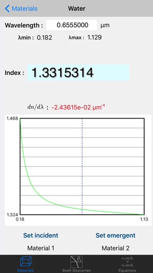 Refractive is a software that calculates the refractive index of the major transparent materials in accordance to wavelength. Refractive is conceived for Optical design engineers as well as students interested in optics.