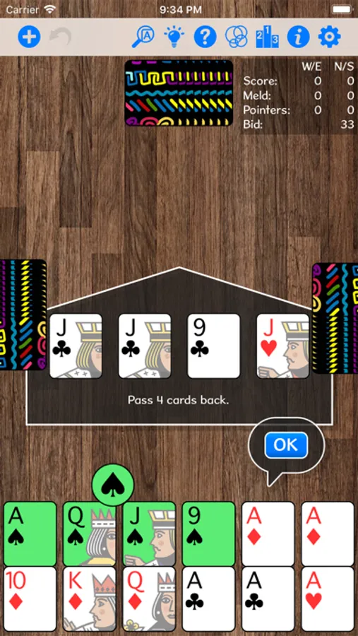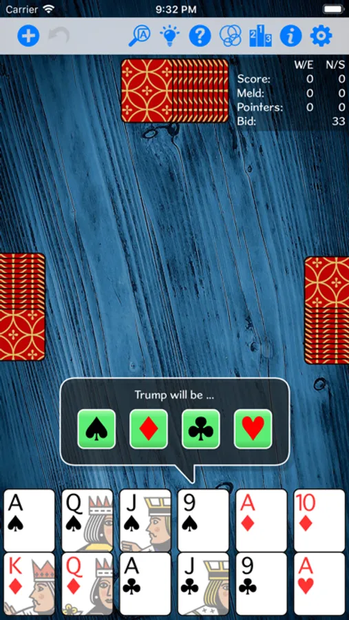 This is a no-ads version of the first and most popular pinochle app for iPad, iPhone, iPod touch, and Mac. Play single- or double-deck with configurable options, including meld bids and shoot the moon. Pinochle Gold has more tabletops and more card back options than Pinochle Plus and is updated frequently with user-suggested features and AI improvements. To try before you buy, see our free, ad-supported Pinochle app.