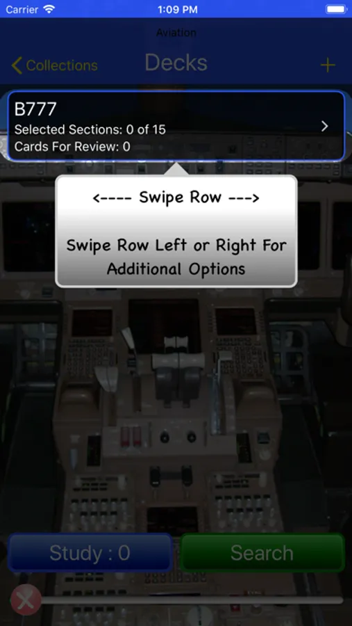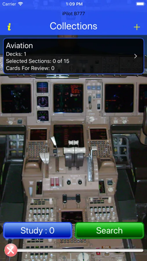 - Share custom flash cards with fellow iPilot B777 users via bluetooth