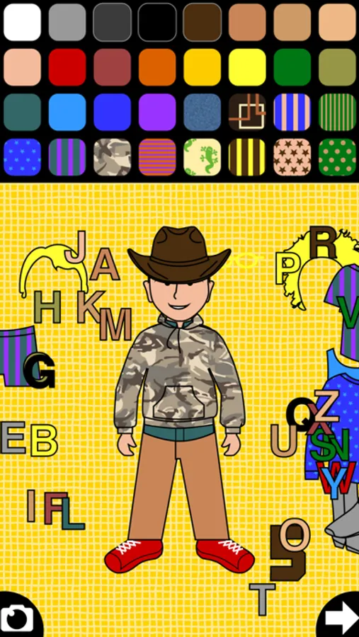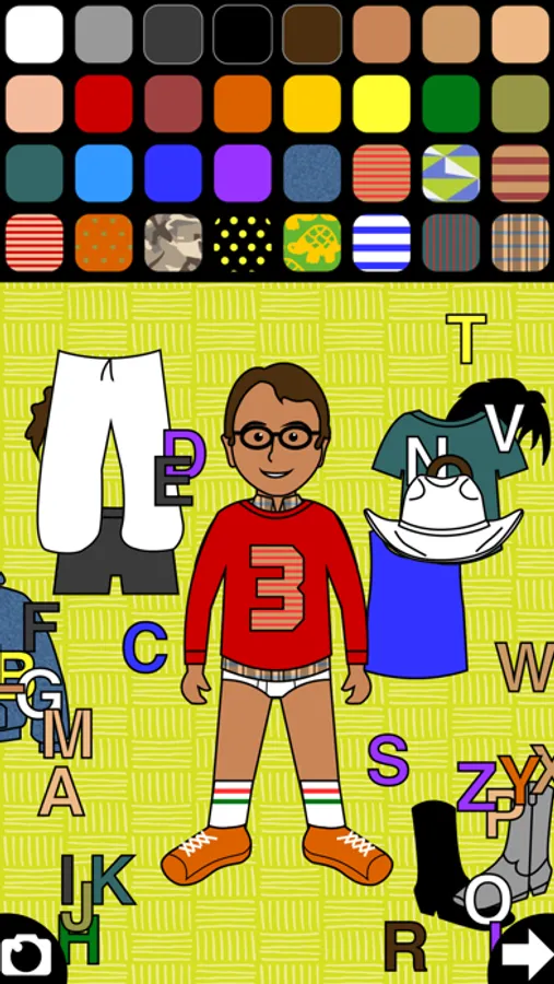 Awesomely original, creative fun for boys and girls ages 2 to 8. Kids pick outfits, colors and patterns by tapping and moving items on screen. Boy and girl dolls are included. No score-keeping, no repetitious music, no makeup or immodest clothes. Kids focus on their task, show their designs to siblings or parents, then tap the arrow to start a new doll. Clothes snap into place, so finger accuracy is not required.