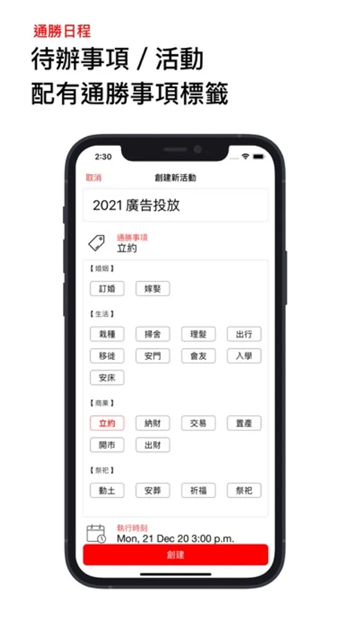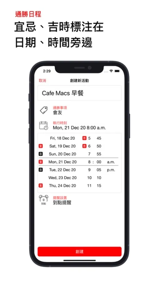3. 選擇標上「宜」的日期和「吉」的時間作為活動開始時刻。