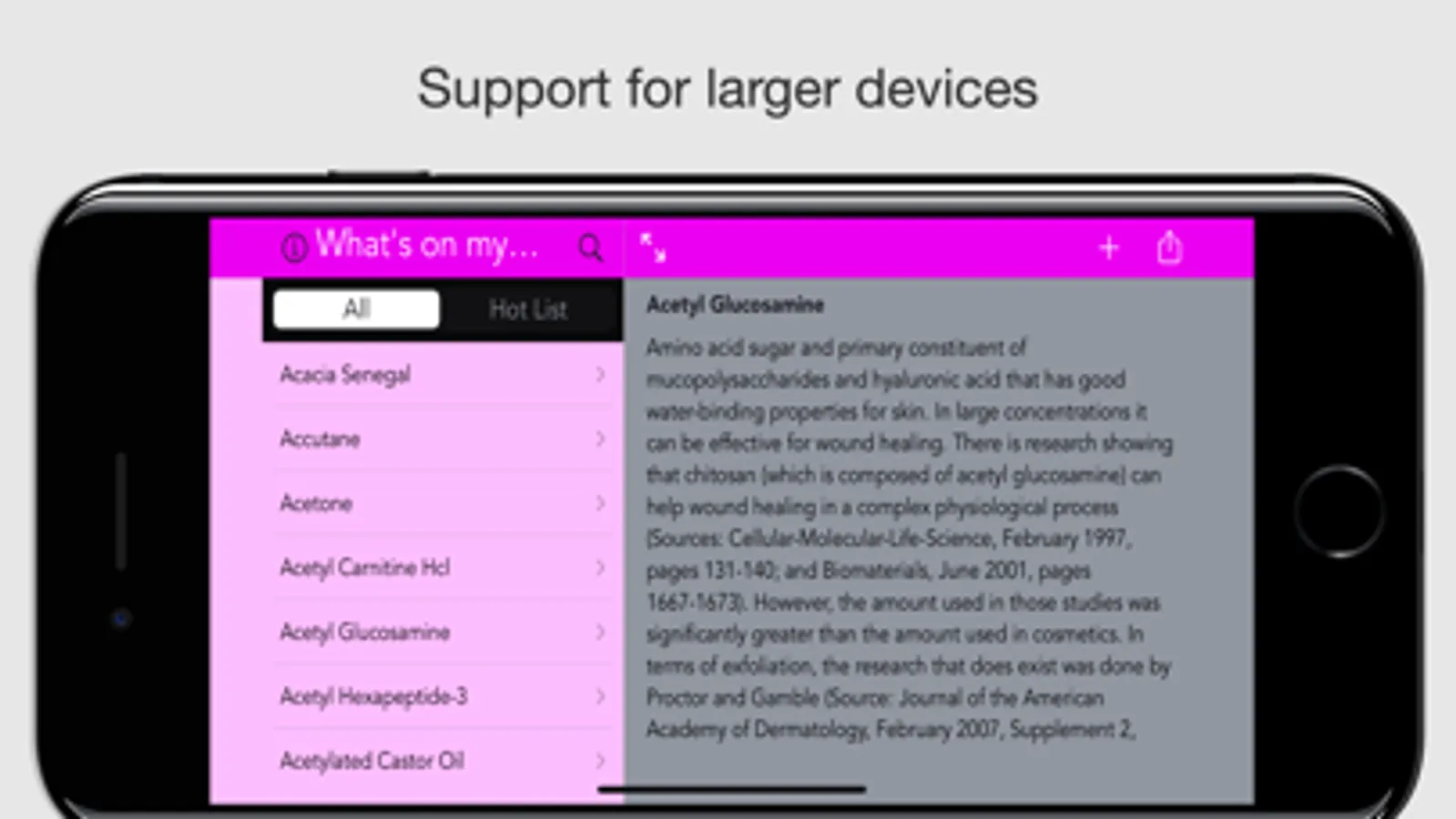 Ever look to see what that skin cream, cosmetic, or shampoo you are using is made of? Wonder if what is said about some anti-oxidant quality is true or exaggerated? Wonder no more! What's On My Face is a searchable database of ingredients found in cosmetics that will quickly and easily answer those questions and more. If you have sensitive skin types or just want to know what Agar is then this application is a must have! Either scroll thru the entries or use the search bar to quickly and easily locate what you are looking for. What this app does not do is tell you what is in a particular brand, rather it helps you identify what a specific ingredient is in a cosmetic, lotion, shampoo, etc.