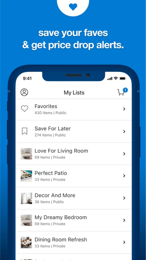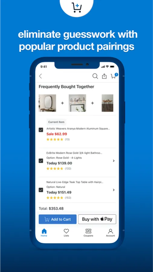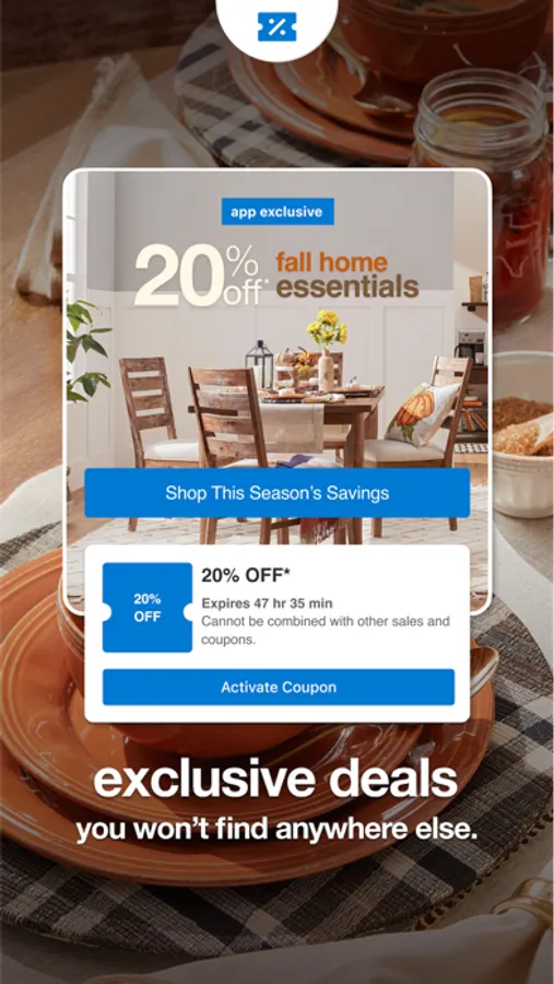 • Shop for furniture and decor with app-exclusive deals and discounts.