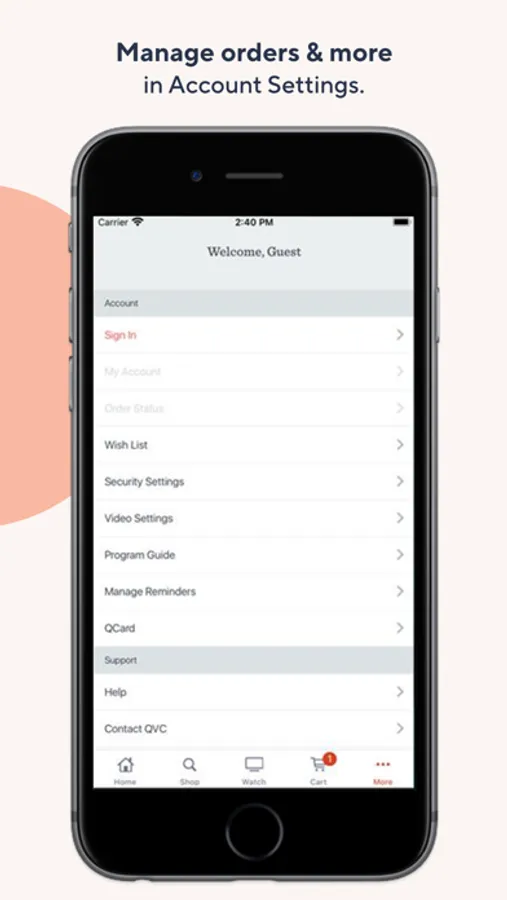 • QVC live video displayed right from the Home tab, so you never miss a moment