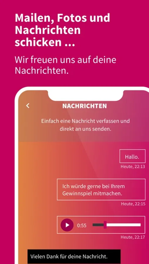 Du willst uns kurz was mitteilen? Schreib uns direkt über die Messenger-Funktion der App!