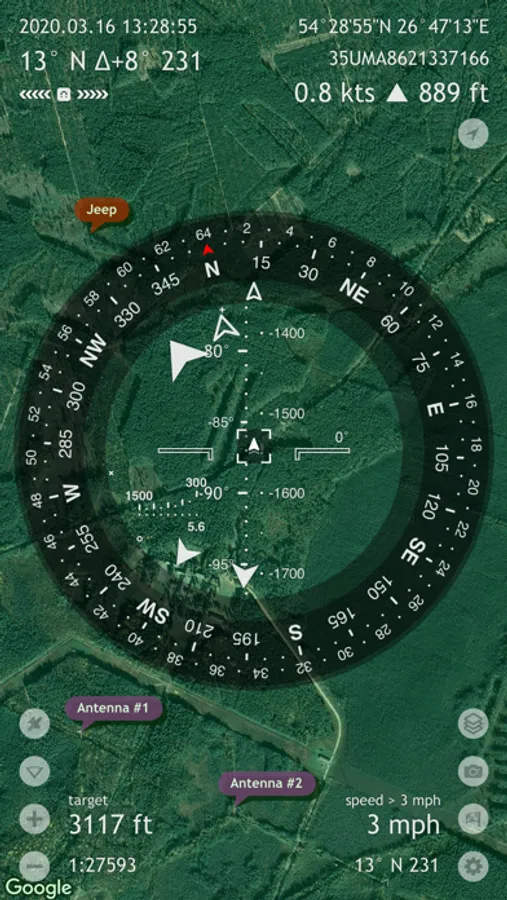 Commander Compass tracks multiple targets simultaneously and shows their info – distance, direction, azimuth, elevation and estimated time of arrival.
