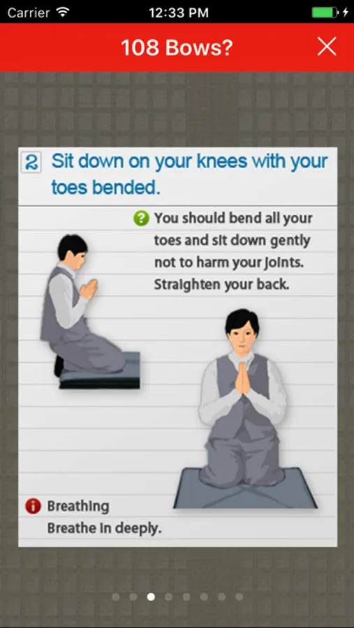 Meditation 108 Bows is an application that helps do 108 bows easily in everyday life. When you do 108 bows it is difficult to count the number, but with this program you don't have to care the number of times. It helps you only focus on excercise and respiration. It also helps check how constantly you do with the records of everyday exercise.