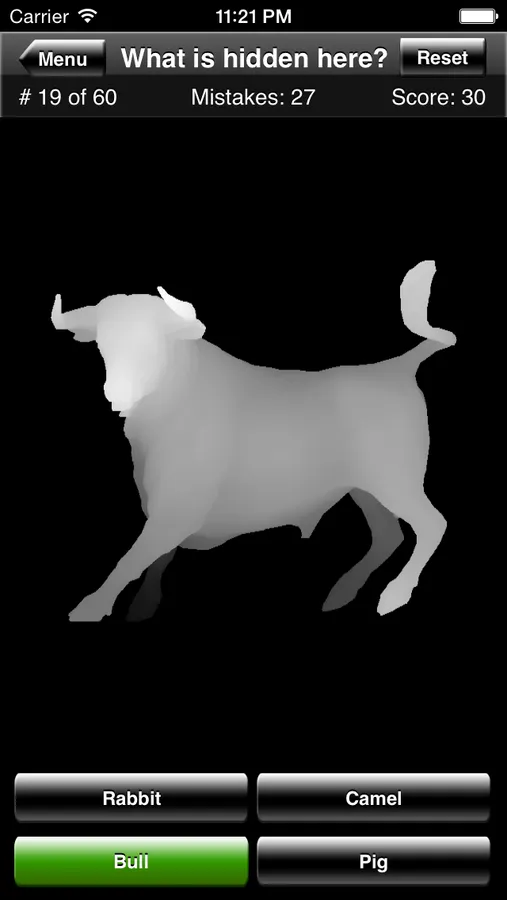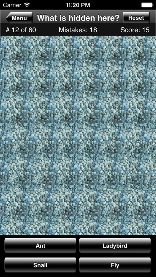 "Magic Eye Stereogram Quiz" is a quiz which invites you to test your ability “look into” 3D stereograms. Stereograms are 3D images hidden within another picture. In order to view the 3D images, simply stare at the picture until the image starts to take shape. You need to answer what is hidden within current picture. Game consists of 20 stereograms. Each stereogram question has 4 possible answers. When you tap one of the answers, the default color of the pressed button is changed to green (when it was the right answer) or to red (wrong answer). You have 3 attempts to give the right answer. If you give it at the first attempt you will receive 3 points, at the second attempt - 2 points, at the third - 1 point. Please take into account – some people cannot see hidden stereogram images!