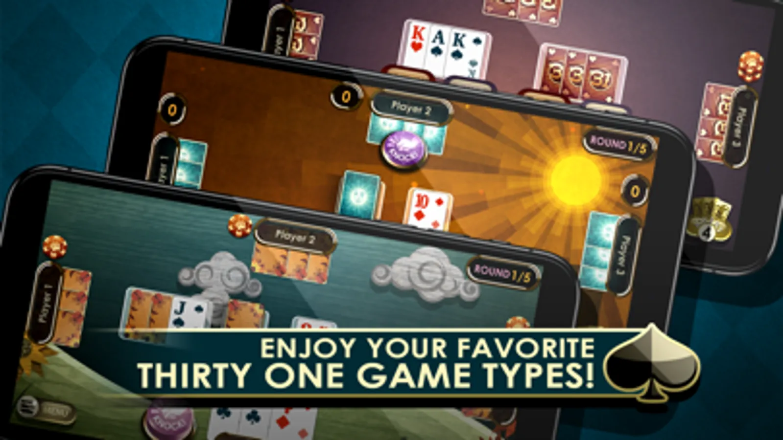 • 5 game modes: Thirty One, Cut Throat, No Elimination, Banking and Switch.