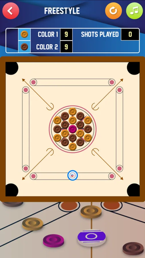 Carrom is a board game similar to Pool, Billards or Snooker. There are 19 discs (counters) and these must be hit using the Striker Disc, into the 4 pockets on the corners of the board.