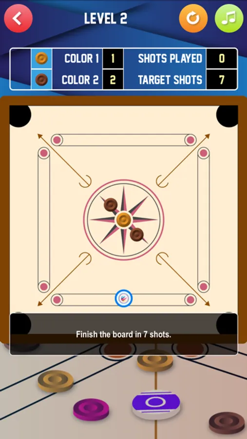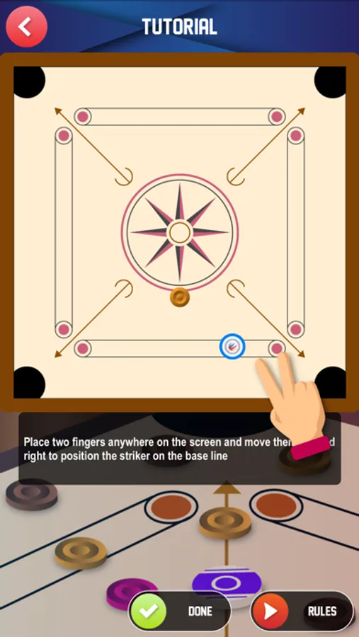 - A simple touch interface! Place two fingers anywhere on the screen and move them left and right to position the striker before launch. Swipe anywhere on the screen, using a single finger, to launch the striker
