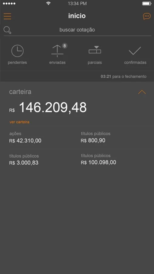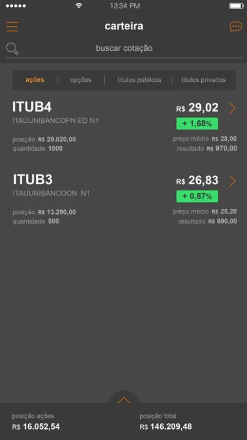 • Acesse sua carteira detalhada em renda varável, títulos privados e Tesouro Direto;
