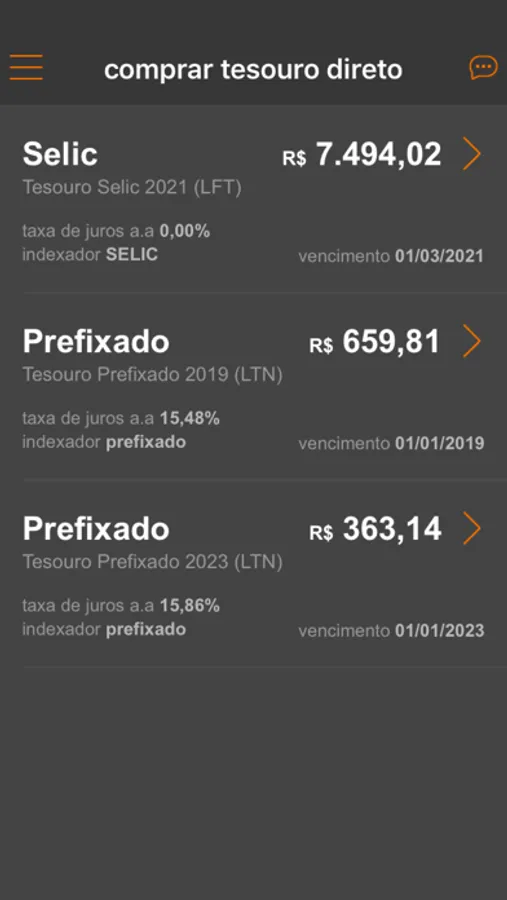 • Compre e venda ações, opções, ETFs, fundos imobiliários e títulos do Tesouro Direto;