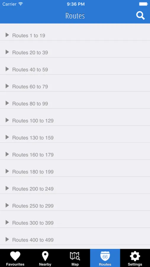 In the routes page you can see all the bus routes in Singapore, and can navigate through the list of stops for each route.