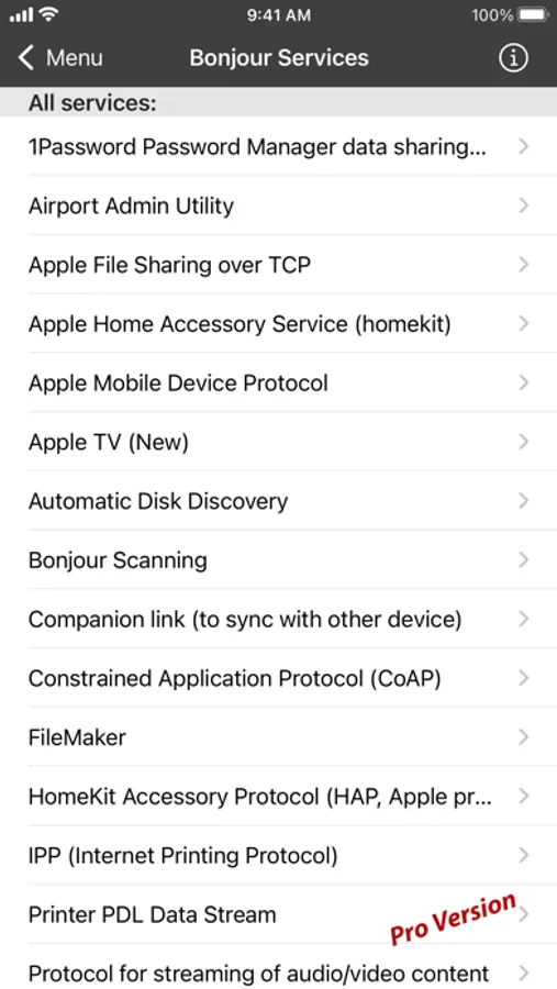 iNet shows the devices connected to your local network, e. g. a computer or router, along with their name, IP and vendor. iNet discovers and distinguishes between windows and macintosh computers with different icons. For most Apple Computers the particular computer model can be seen. Find out the name and IP of the connected devices as well as the number of running Bonjour services on that particular device. (MAC and Vendor cannot be detected anymore since iOS 11) A classic portscan on the choosen device can also be performed.