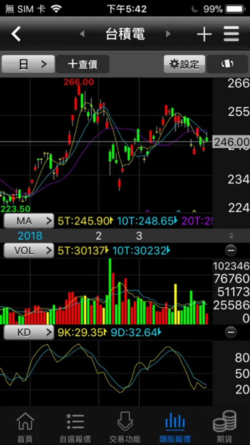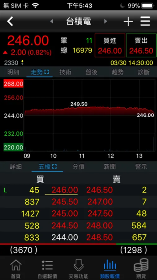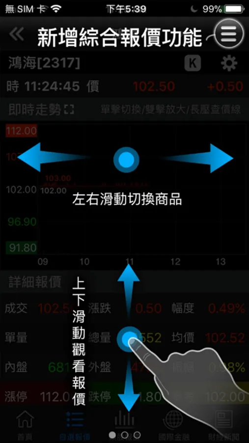-個人化專屬自選報價功能,提供五個群組,250檔商品設定功能。