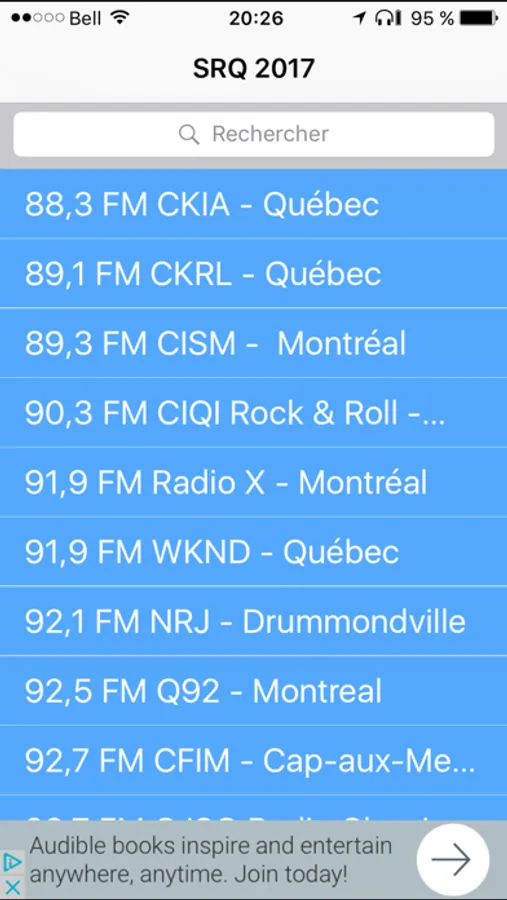 This application now offers over 60 of the most popular stations such as CKOI, Q92 and CHOM. Other stations are regularly added.