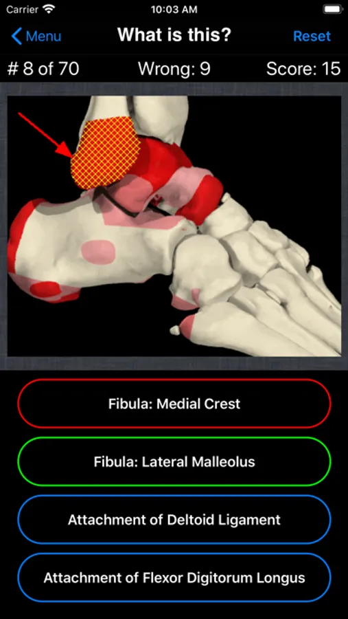 "Anatomy Foot Quiz" is one more quiz to test your knowledge of human anatomy. It may be used for testing and educational purposes for people well-informed about the anatomy. Game consists of 70 illustrated questions from the following "Foot and Ankle"-areas: