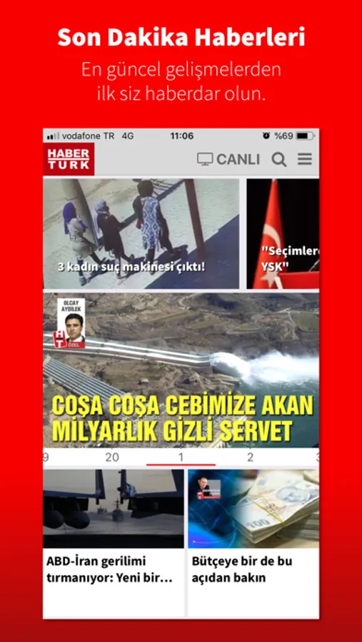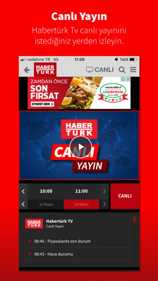 - Live broadcast: You can watch Haberturk TV and listen Haberturk radio