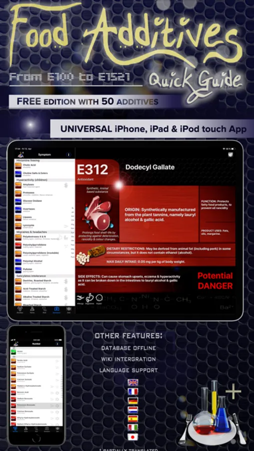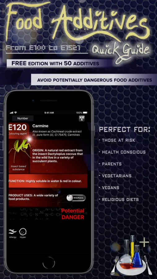 ■ Wikipedia integration for even more detail. Each additive conveniently embeds Wikipedia within the app