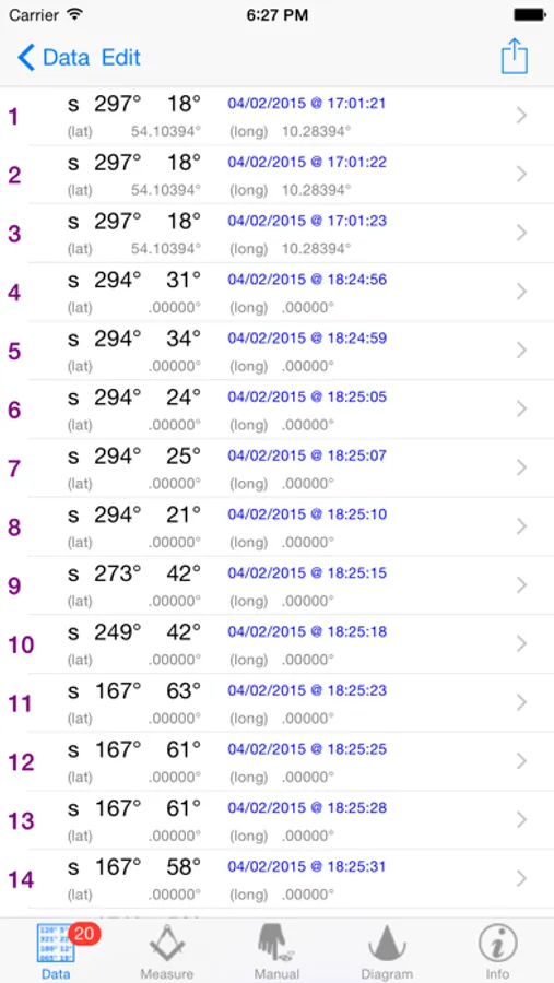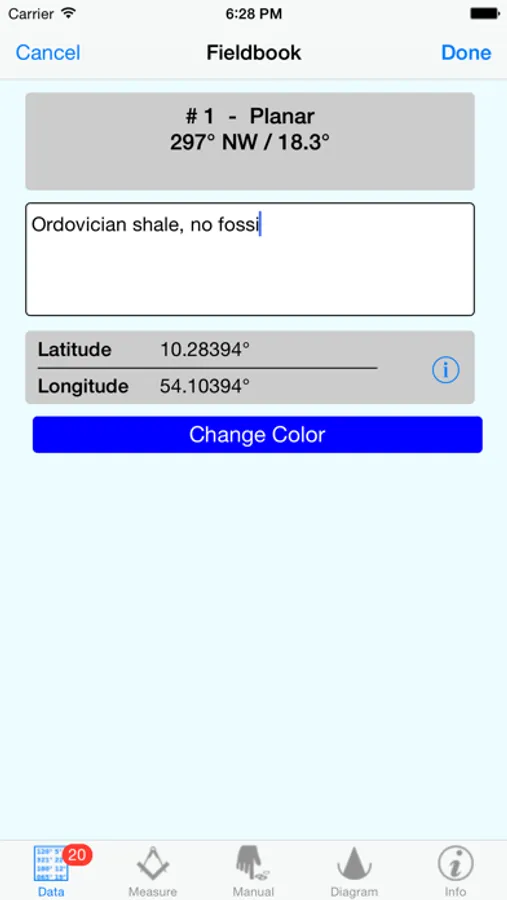 This app turns your iPhone (or iPad) into a geological compass, a tool for each geologist. It can be used to measure the direction of dip and the angle of dip of geological strata. The app shows the current device orientation in a realtime stereographic projection. The data can be previewed in projection diagrams (Wulff and Schmidt Net) and transferred to your computer. You can add text to the measurements and plot the measurement localities on a map.