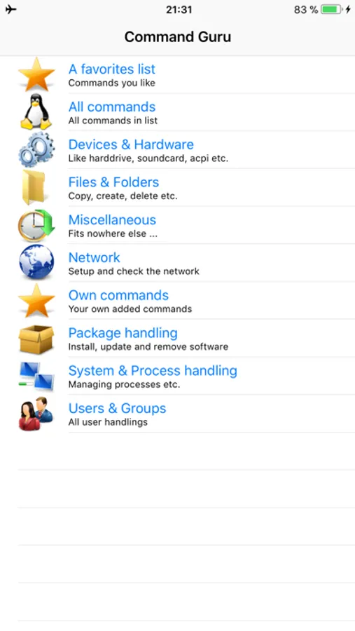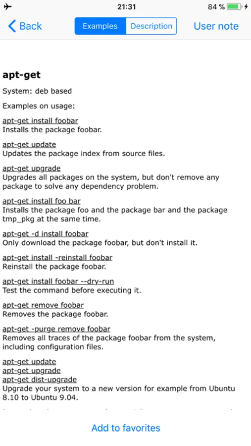 This cheat sheet will give you examples and descriptions of more than 100 common Linux commands and all of this are available offline. No need to be connected to use it.