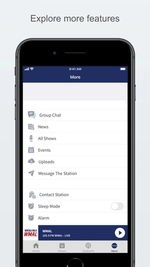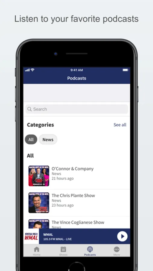 Never be without your favorite radio station. WMAL is proud to present our OFFICIAL radio app. Listen to us at work, home or on the road. Install our app and get instant access to our unique content, features and more! - New design and interface - See current playing show, latest podcast episodes and up to date station and local news on a single screen - Access all your favorite podcast shows on demand. Listen live (less storage requirement) or download and listen when offline - Get notifications and single click access to any station promotions or contests - View station’s YouTube channel without searching or leaving the app (when available) - Wake up to your favorite station with our alarm clock. Record a personal reminder to play before waking to the station. - Fall asleep while listening to your favorite station - Access station's weekly show schedules so you don’t miss a thing - Real-time weather for where you are - Share our app via Facebook, Twitter, and e-mail - Car Mode provides simple audio controls so you can listen while on the road