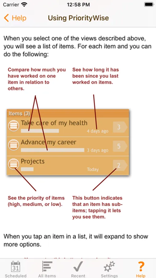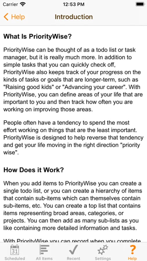 • PriorityWise is designed to allow you to define areas of your life that are important to you and then track how often you are working on improving those areas.