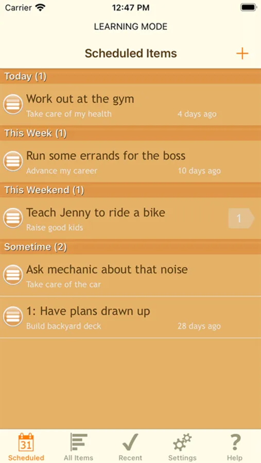 • In addition to simple to-do lists, PriorityWise also tracks your progress on the kinds of goals that are longer-term, such as "Raising good kids" or "Advancing your career".